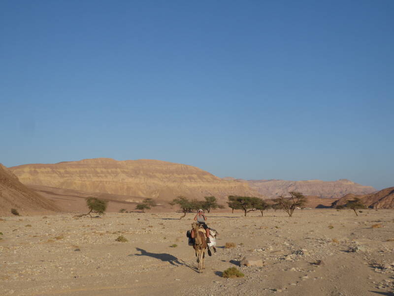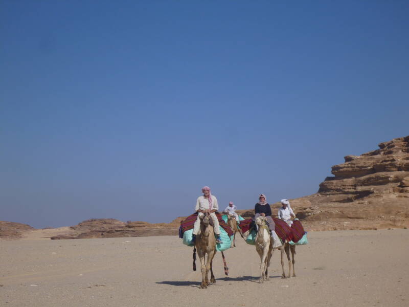 Meestal rijden we ’s ochtends een paar uur. Daarna zoekt onze bedoeïengids een mooie schaduwrijke plek om te lunchen en te rusten. Sommige dagen trekken we iets langer, andere keren ietsje korter. De bedoeïenen weten precies wat goede plekke zijn om te stoppen.